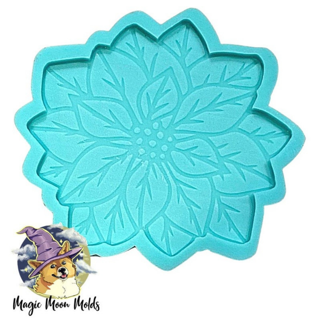 CUSTOM Handmade 5″ Poinsettia Coaster Mold (this is a very odd-shaped mold and the size variance can be a tad bit over 4″ in some of the dimensions. This Pointsettia Coaster Silicone mold is engraved and you can get really creative with this mold! Whether you are using mica, glitter, or even clear epoxy, there are so many possibilities for this awesome mold!