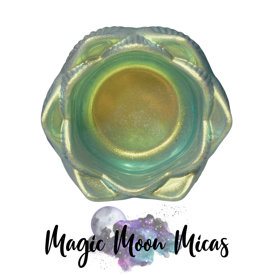 The Count is a gorgeous Chameleon color shift pigment that changes from Green/Golden Green/Yellow/Teal
