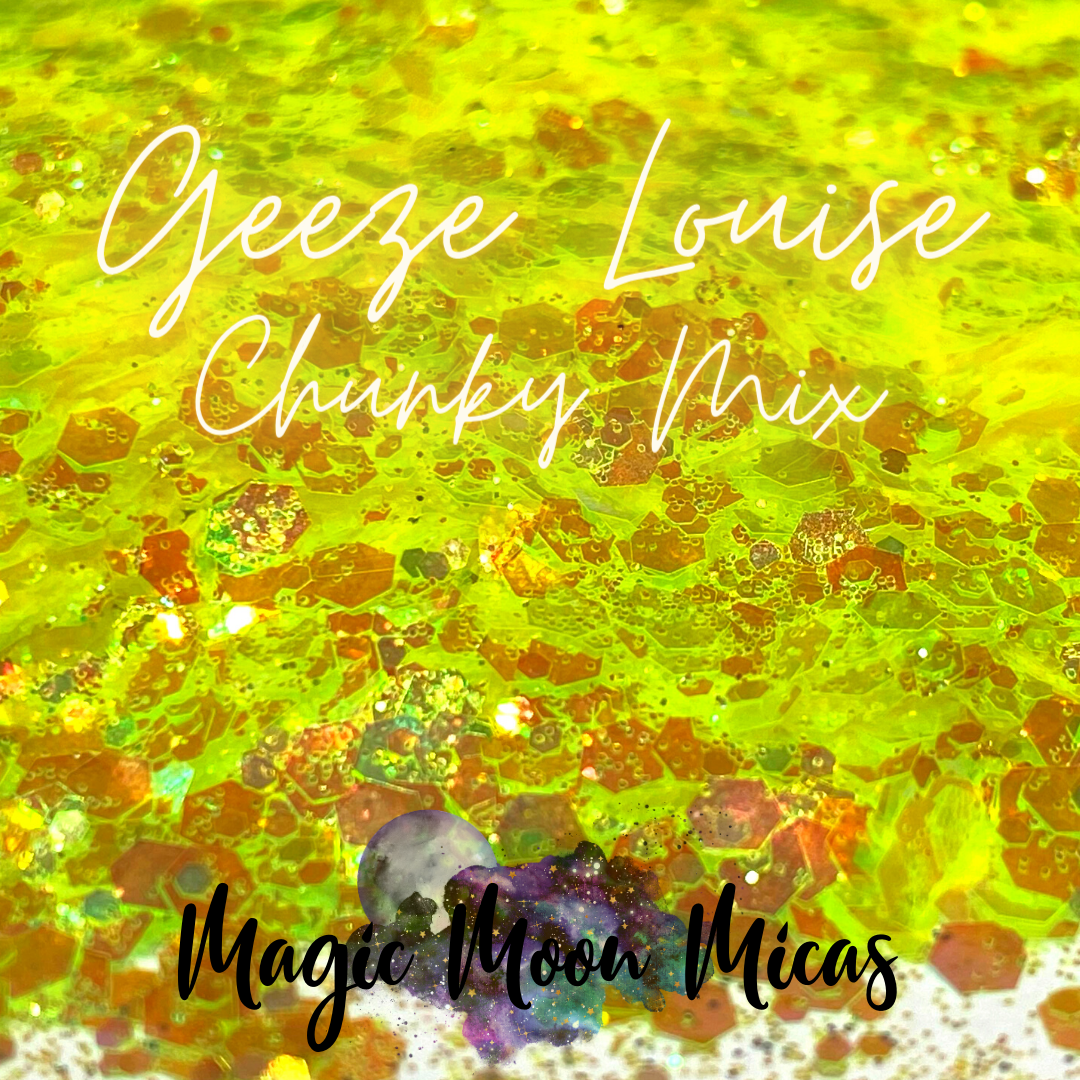 Geeze Louise is a gorgeous Yellow Chunky Glitter Mix The sparkle that reflects off of this glitter is simply gorgeous! This Chunky Glitter is perfect for any project!