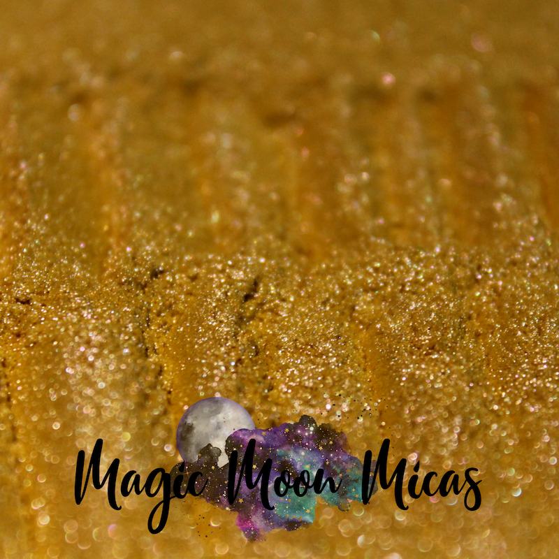 Citrine Dreams is a beautiful dark yellow pearl sparkle luster cosmetic grade synthetic mica glitter powder.