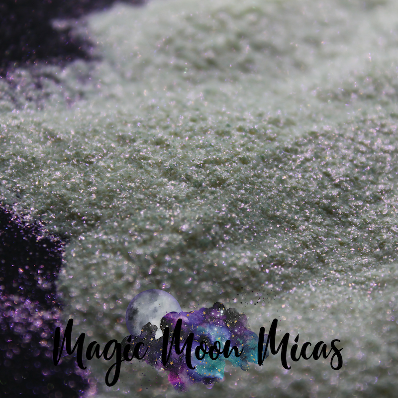 Opulence is a beautiful white sparkle luster Synthetic Mica Glitter Powder. Opulence has a purple super sparkle luster glitter effect. Can be used in general cosmetics. Synthetic Mica Glitter Powder is great for crafts such as tumblers, canvas art, dirty pours, and molds.