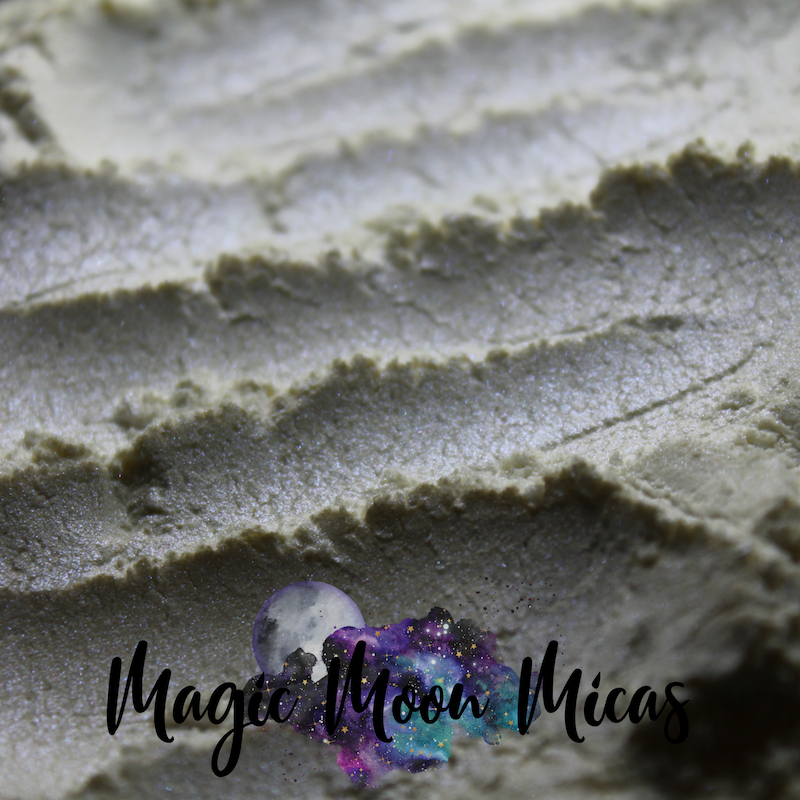 Opulence is a beautiful white sparkle luster with a purple glitter effect cosmetic grade synthetic mica glitter powder.