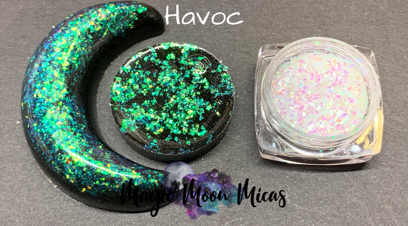 White Opal Chrome Chameleon Flakes are great for any color base, Havoc will adjust its color reflection accordingly. Perfect for resin jewelry, nail art, molds, and more. You can mix into epoxy or sprinkle on top of wet epoxy.