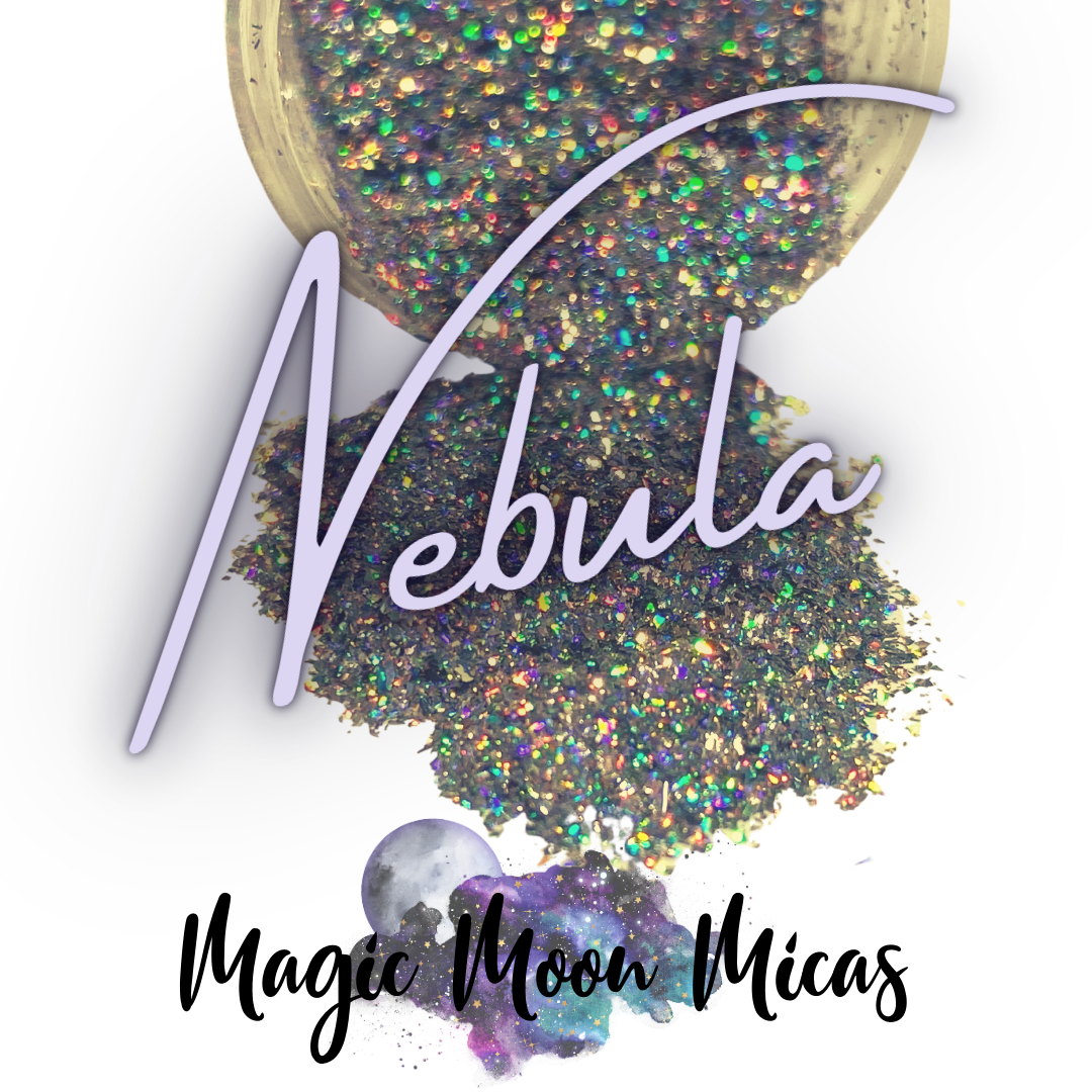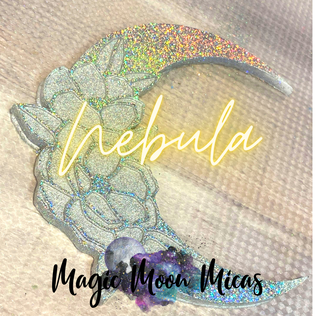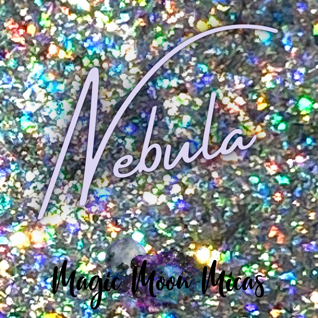 Nebula is a Silver Holo Pigment Flake – Galaxy Holo Pigment Flake. This Holographic Pigment Flake is perfect for adding a touch of sparkle. The sparkle and reflections that reflect off Nebula are amazing. You only need a teeny tiny bit! Perfect for dusting molds, or incorporating into epoxy resin.