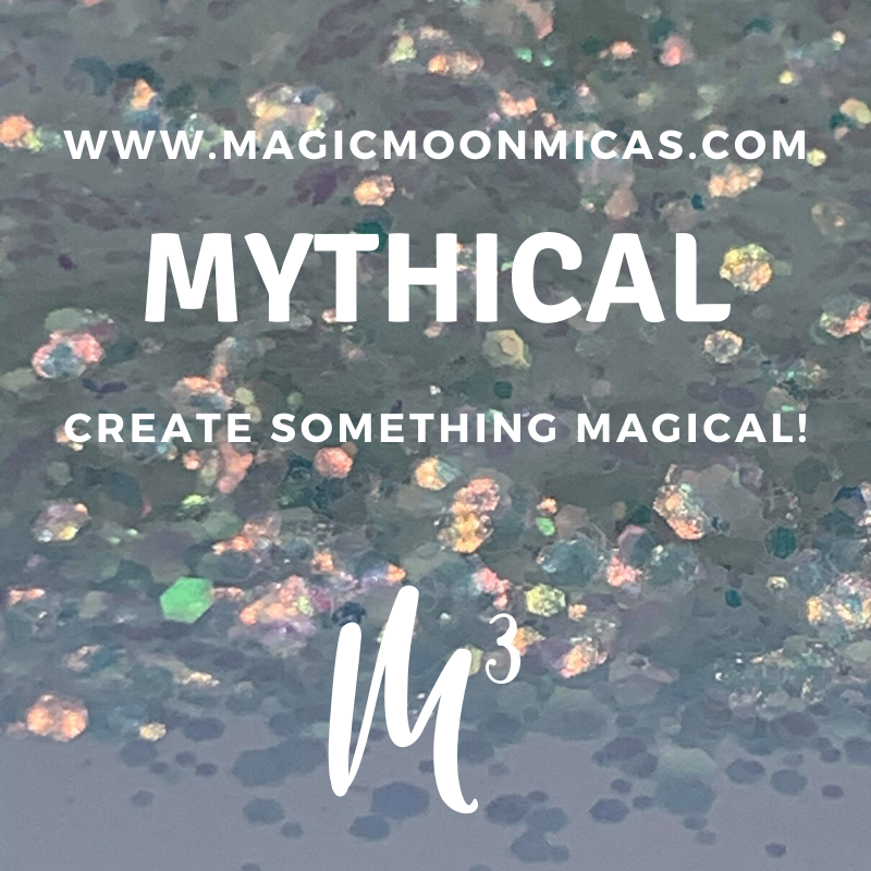 1.5oz of Mythical Chunky Opal Color Shift Glitter pink/blue/white, some lighting looks white with a golden reflection