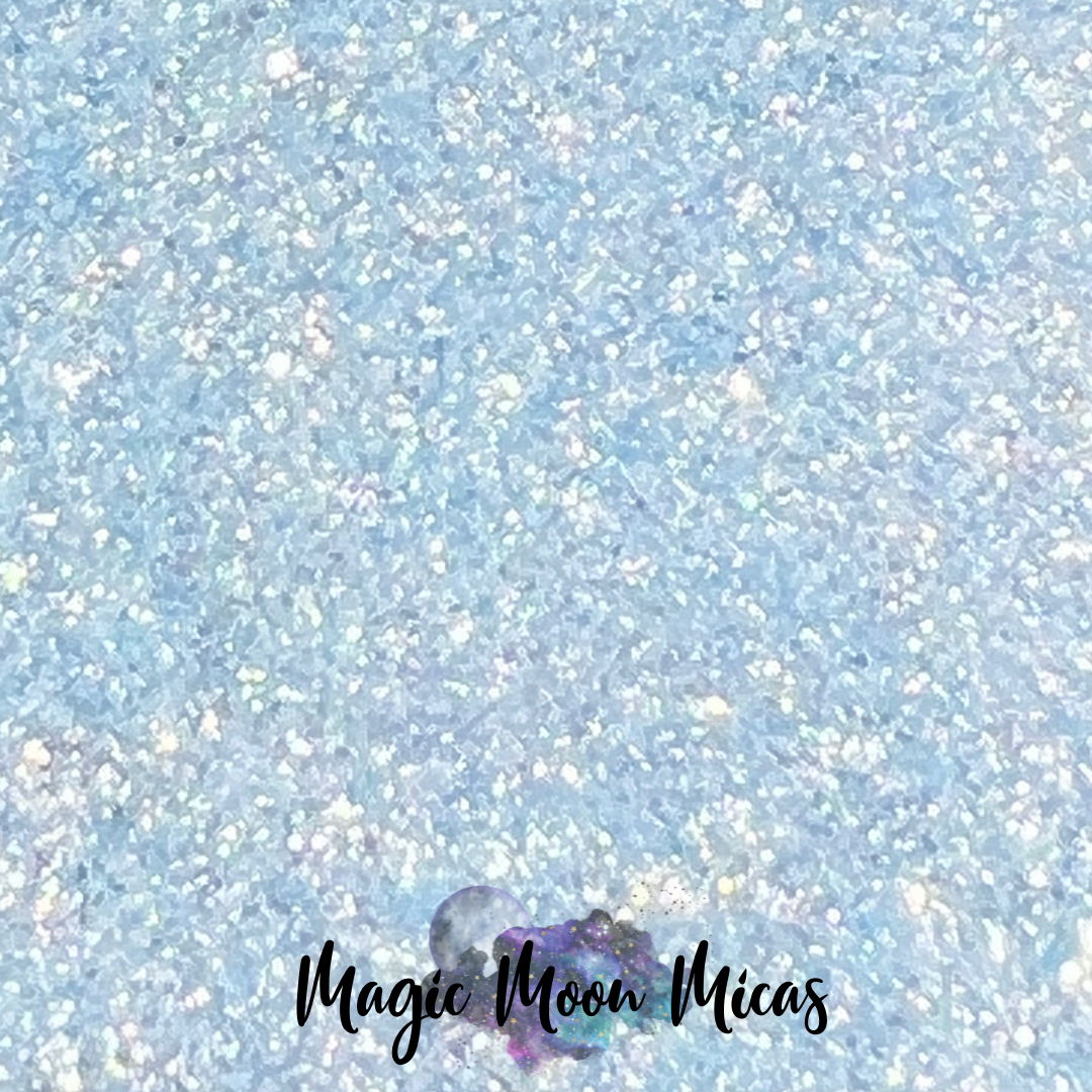 5g Bag Broken Halo – Broken Halo is a gorgeous Baby Blue Mica Glitter Powder. 50-250 Micron Size. General Cosmetic Use.